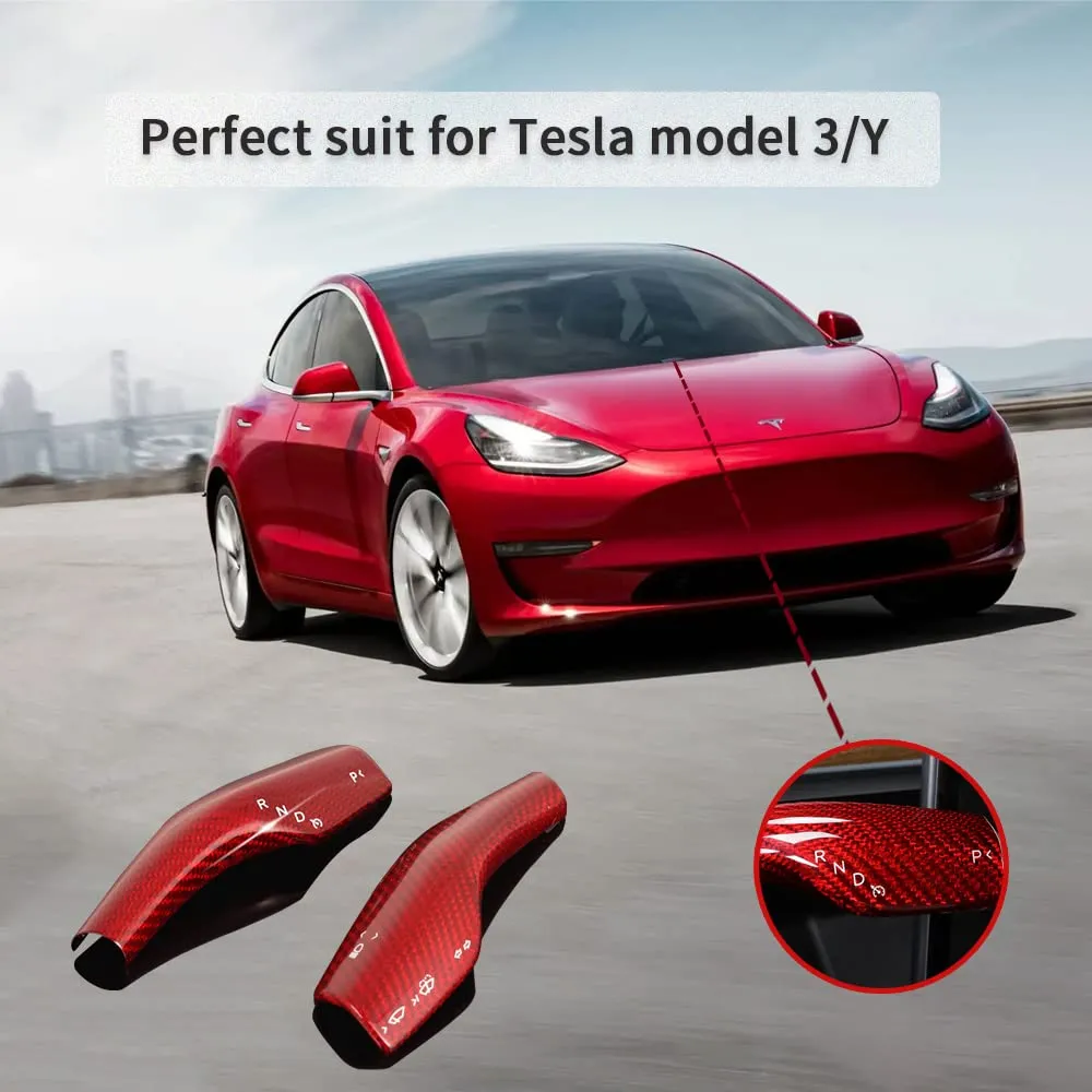 Refinedcarbon Model Y Model 3 Carbon Fiber Column Gear Shift Cover Tesla Steering Lever Cover Real Carbon Fiber